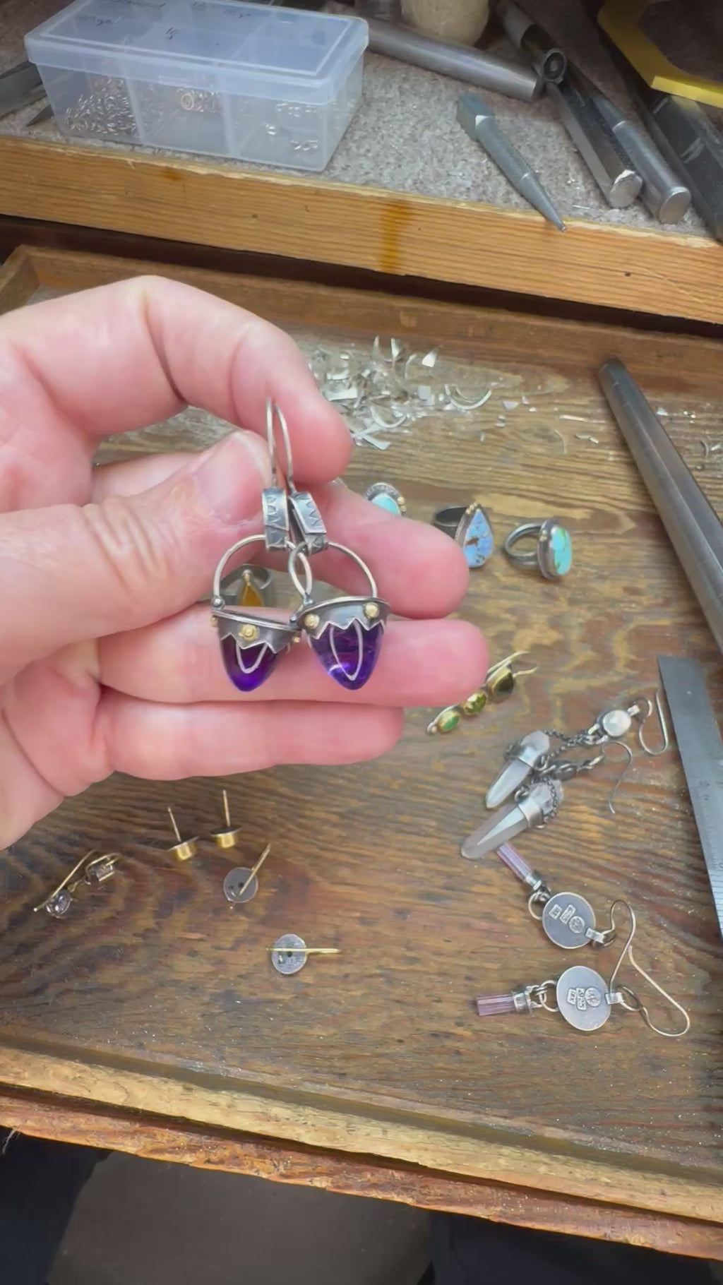 Amethyst Earrings - Sterling Silver + 18k Gold