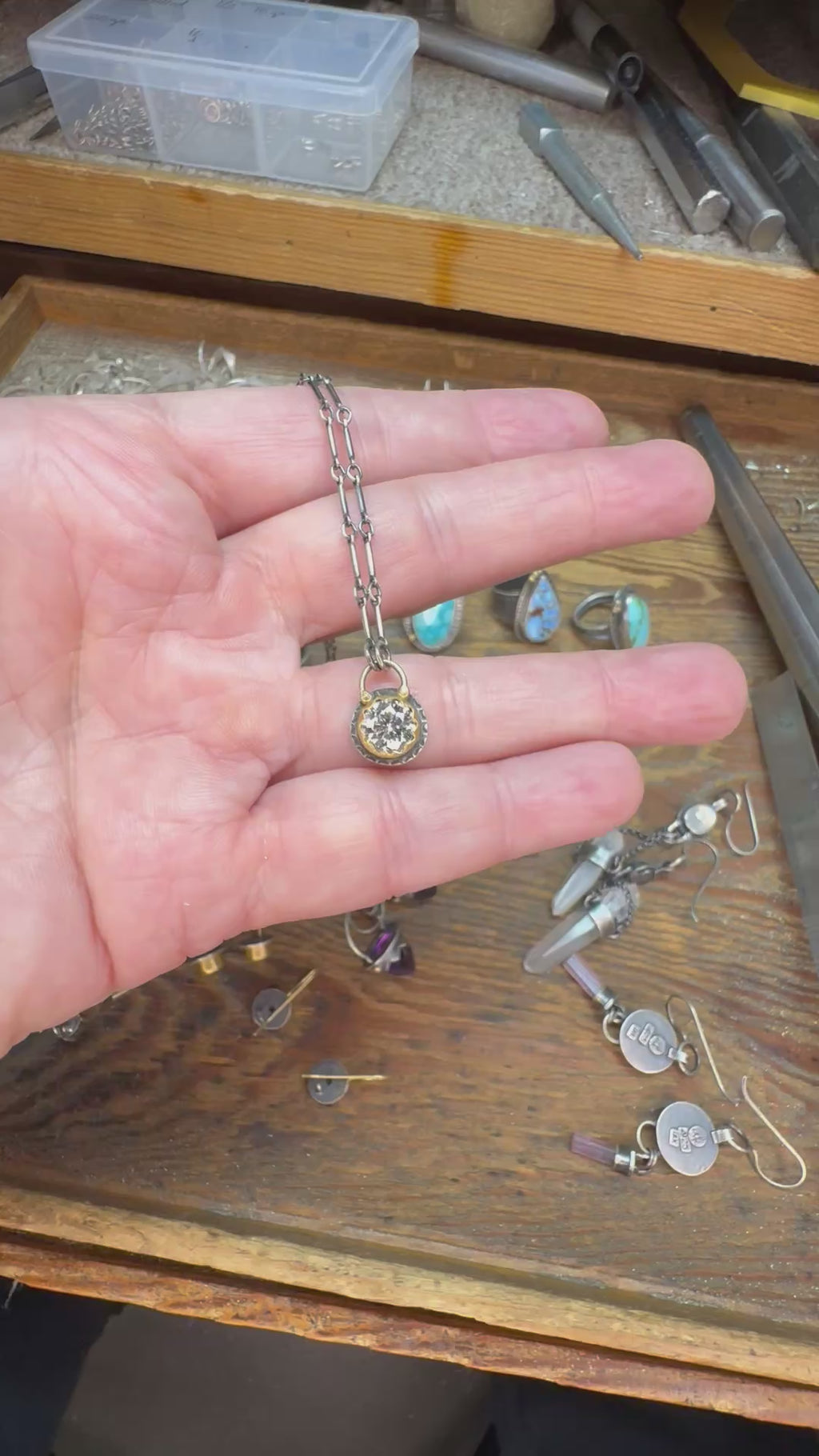 A single 1 ct lab-grown diamond in a rustic, hand-stamped sterling silver setting with a luminous 22k gold bezel. Simple, radiant, and one of a kind.